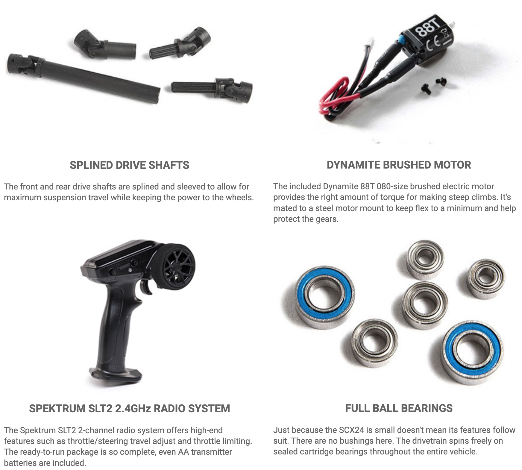 The performance and value of the SCX24™ 1967 Chevrolet C10 are better than ever before! Oil-filled shocks, Spektrum™ electronics, and new body colors have been added for a classic style RC rig that’s completely ready-to-run and sized to run anywhere.