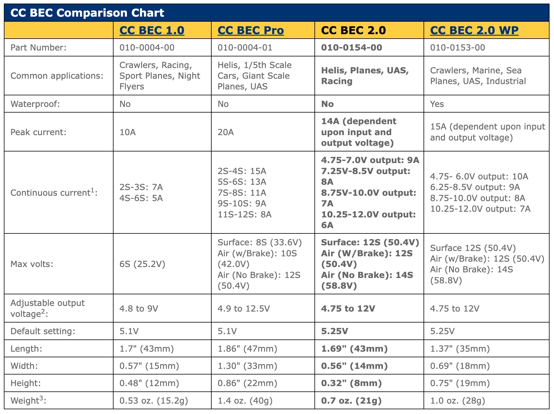 Note: CC BEC 2.0 should never be operated in series or parallel with another BEC or backup receiver pack connected to the RX/Servo side of the circuit.