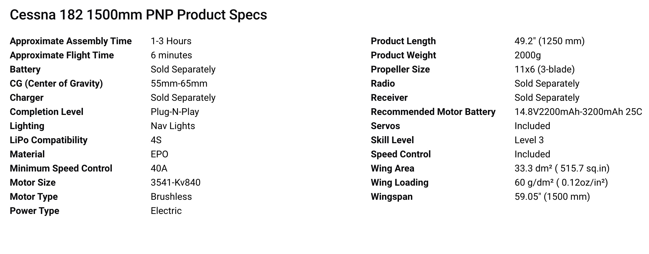 The 1500mm Cessna 182 has excellent short takeoff and landing capabilities, easily handling distances within three meters. Equipped with a robust propulsion system and effective flaps, it ensures quick takeoffs and landings even on smaller fields or confined areas.