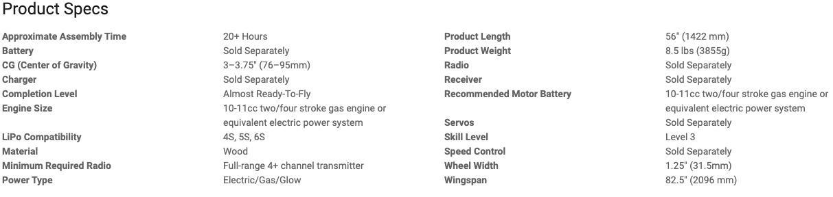 - Giant-scale 82.5” (2.1m) replica with strong and stiff – yet lightweight and long-lasting – built-up wood construction finished with genuine UltraCote film covering