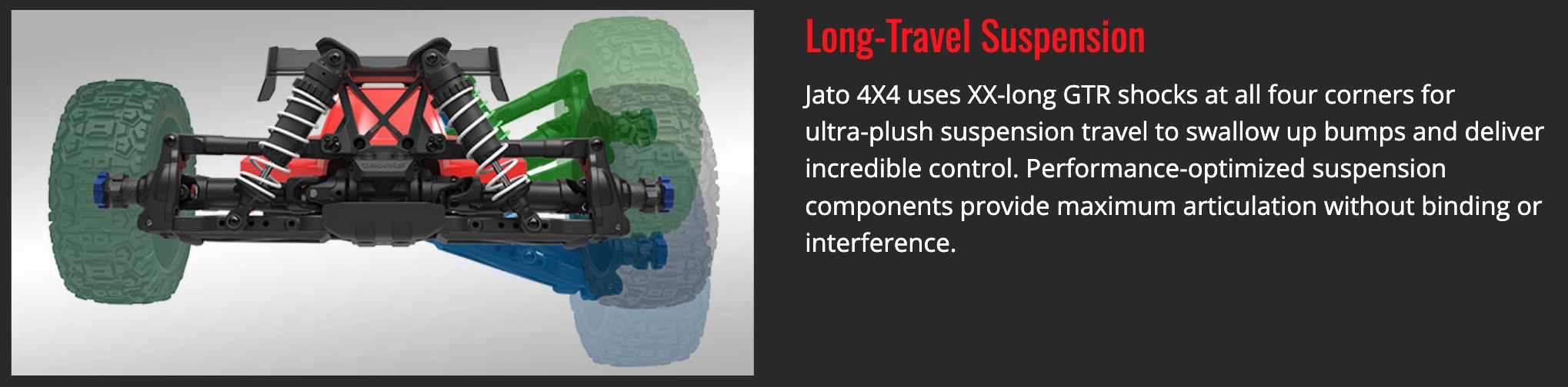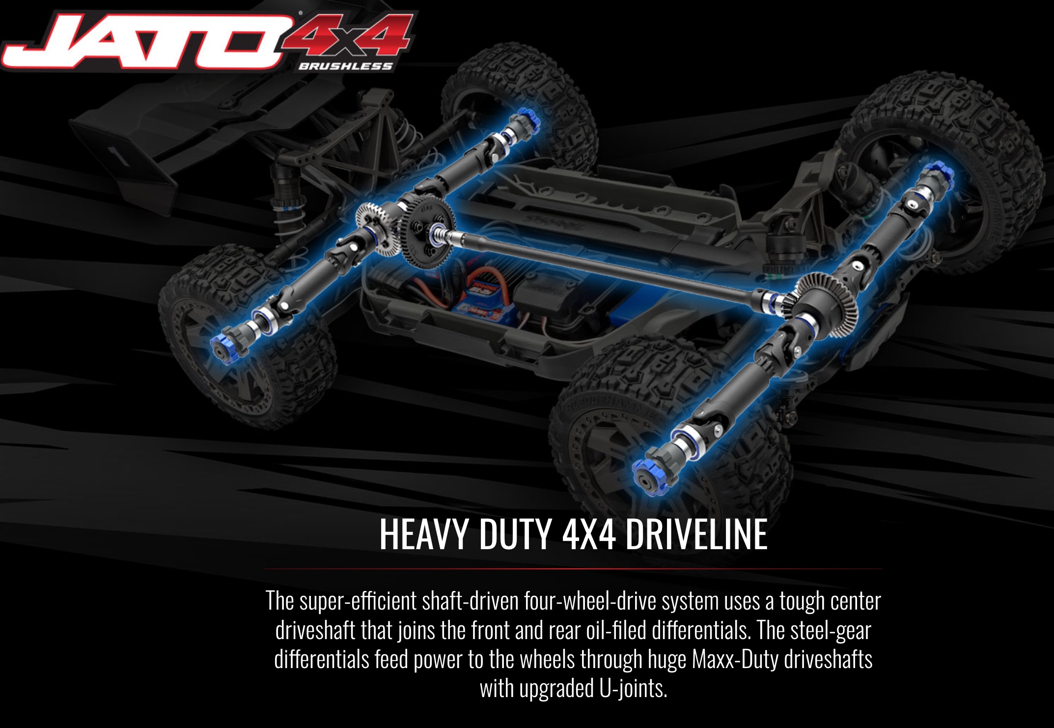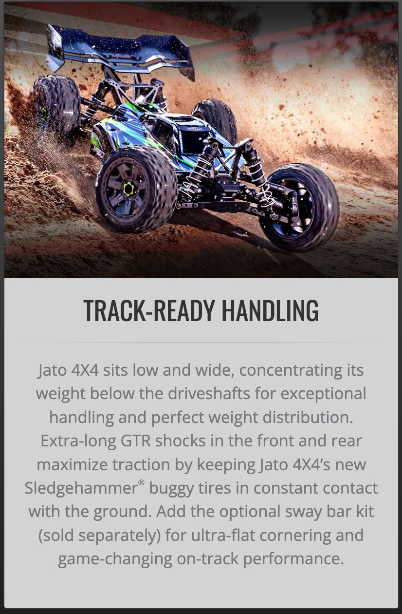 The new Jato 4X4 is the 1/8 scale brushless buggy that does it all! Built with Traxxas’ toughest Extreme HD components, Jato 4X4 goes from the track to the skate park without missing a beat. Now your customers can have the precision of a race buggy with the toughness of Traxxas’ toughest off-road trucks.