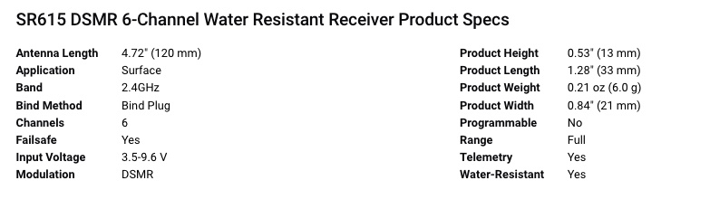 (1) SR615 DSMR 6-Channel Water Resistant