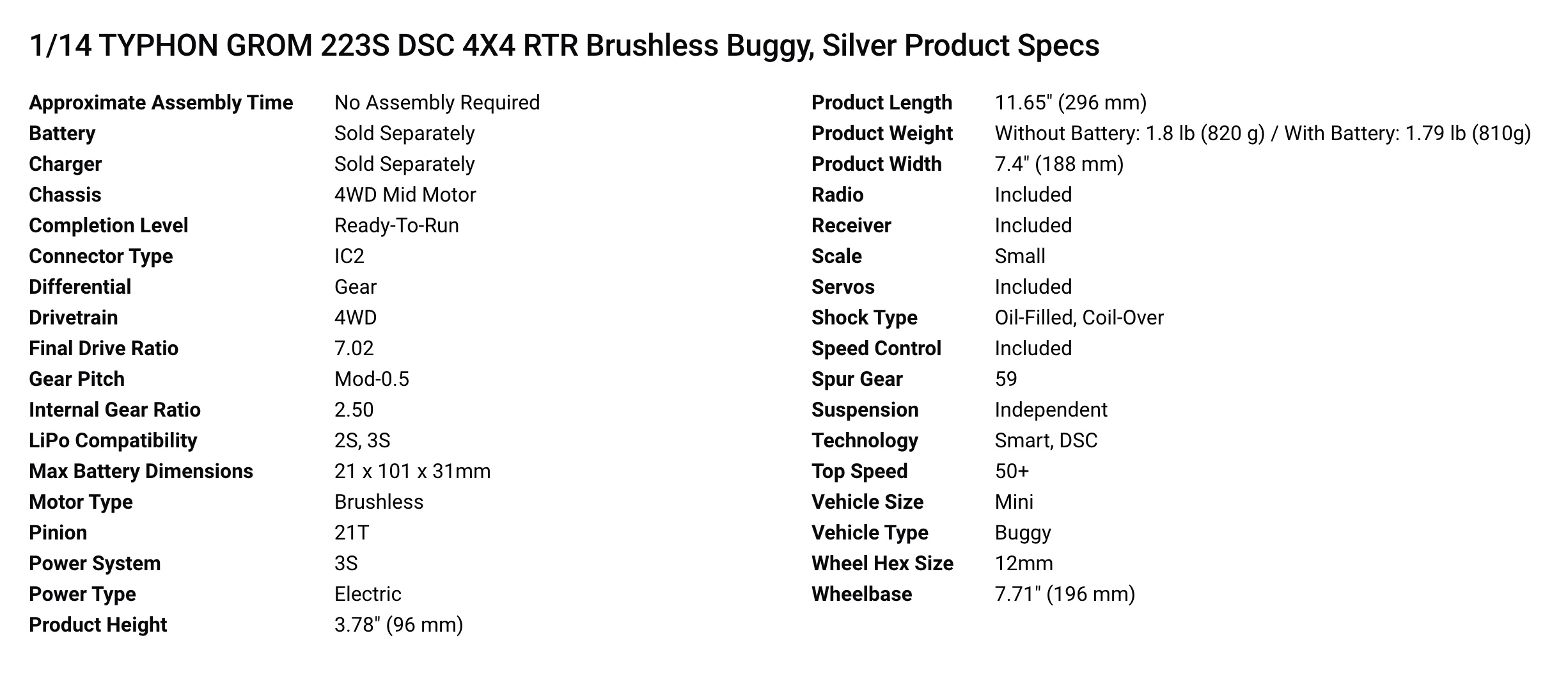 ARRMA RC - TYPHON GROM 223S - Silver - 4X4 223S BLX BRUSHLESS SMALL SCALE BUGGY RTR WITH DSC - ARA2306T1